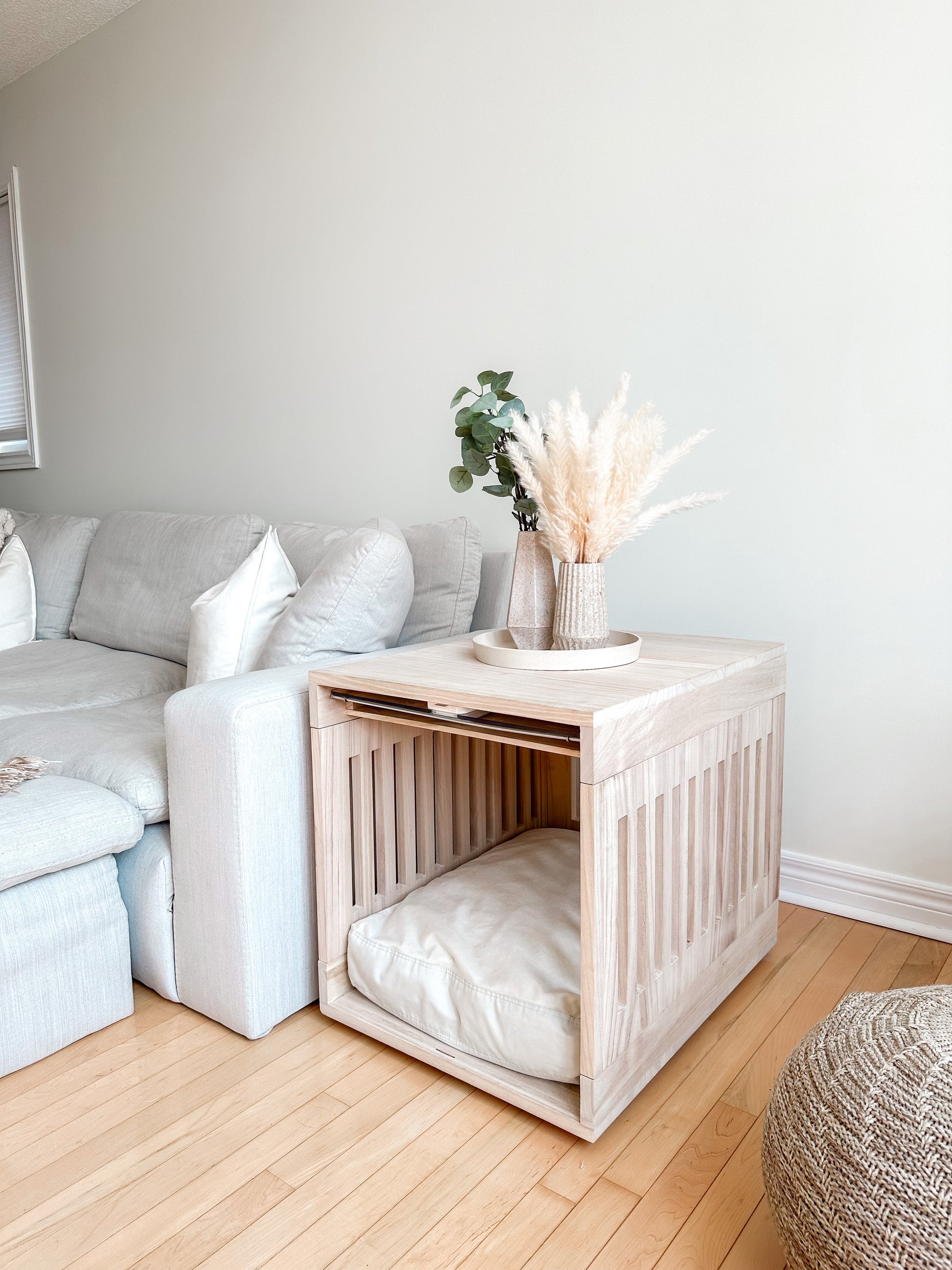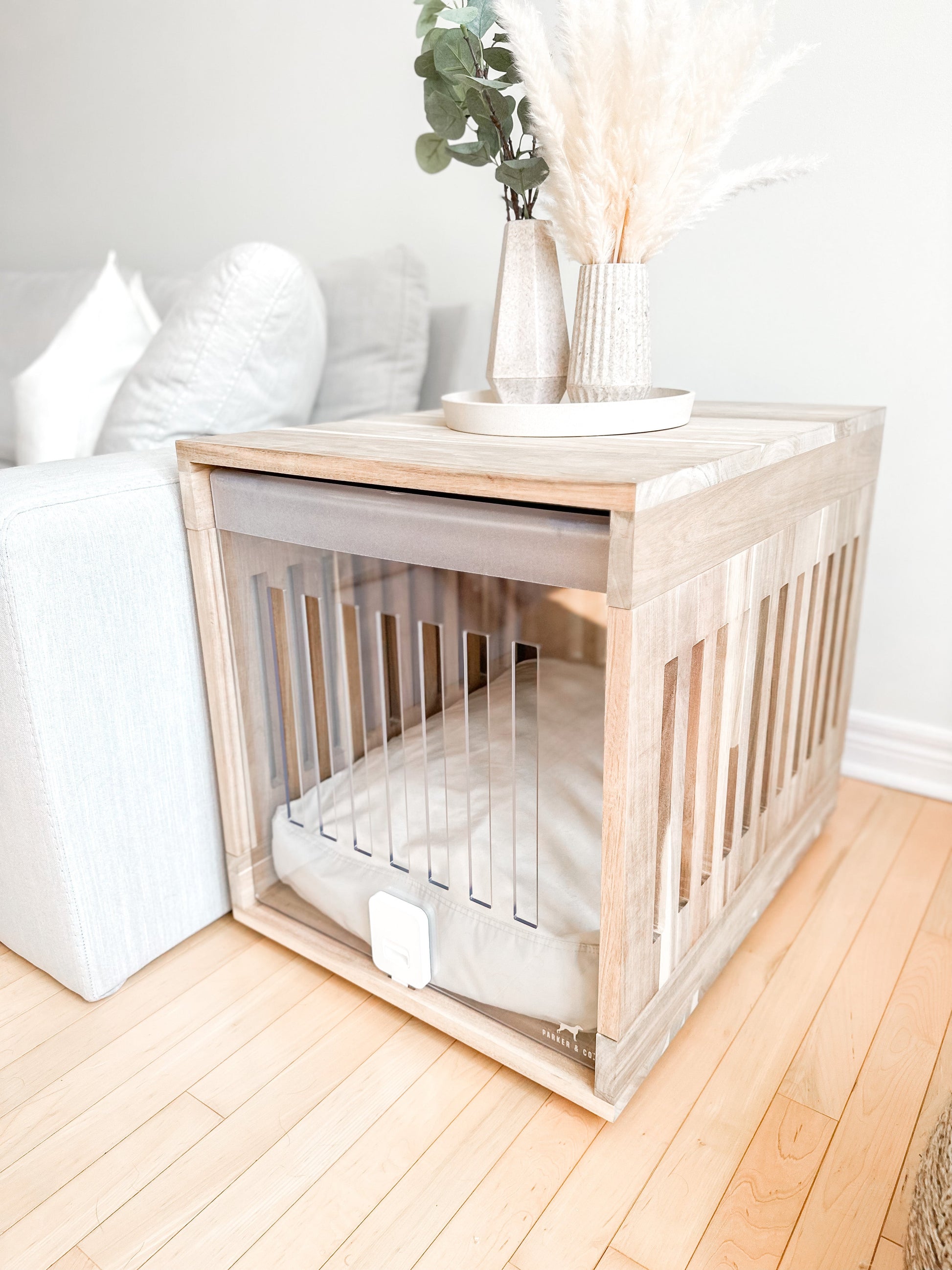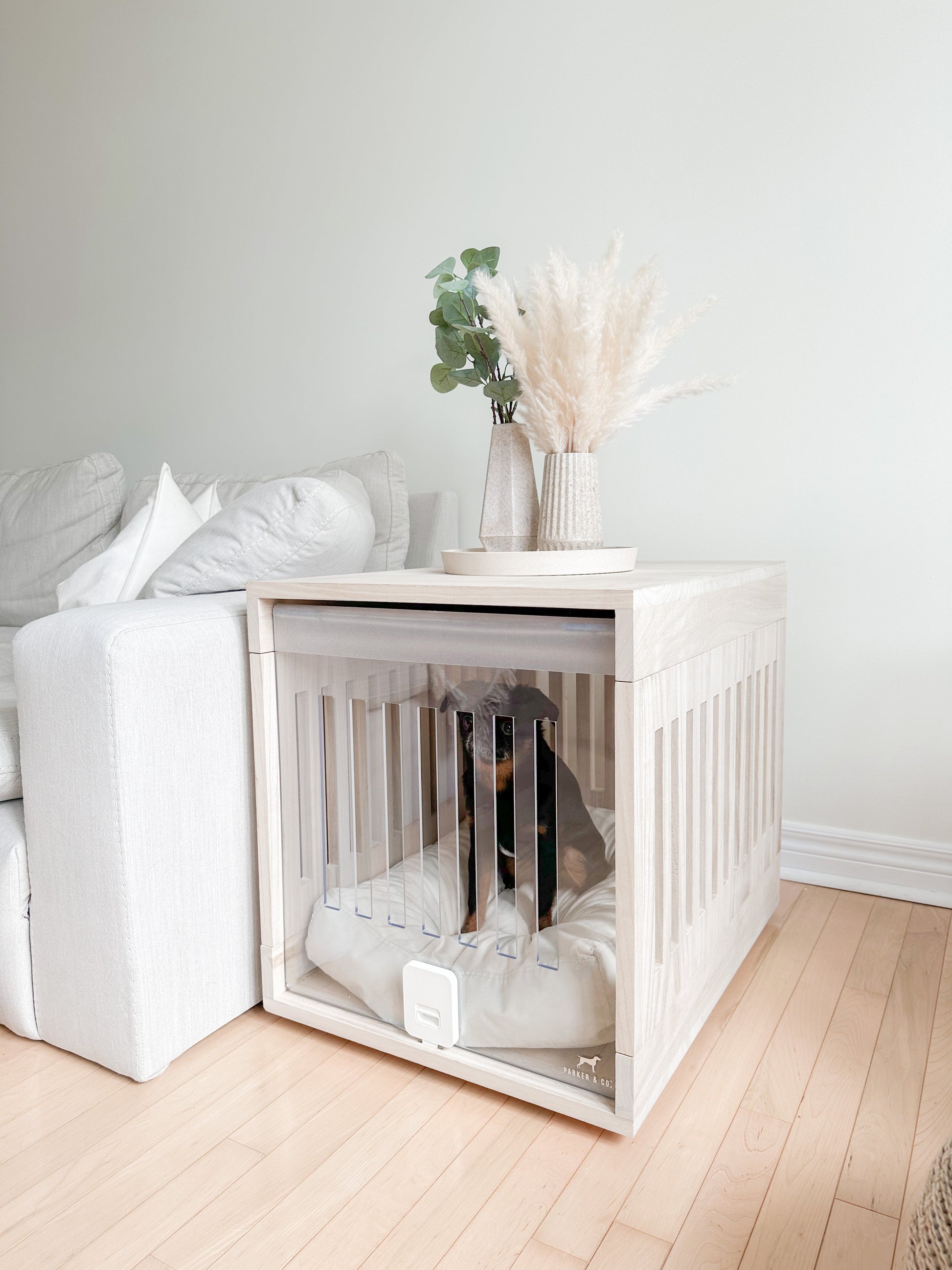 This stylish multi-use Dog Crate is crafted from premium