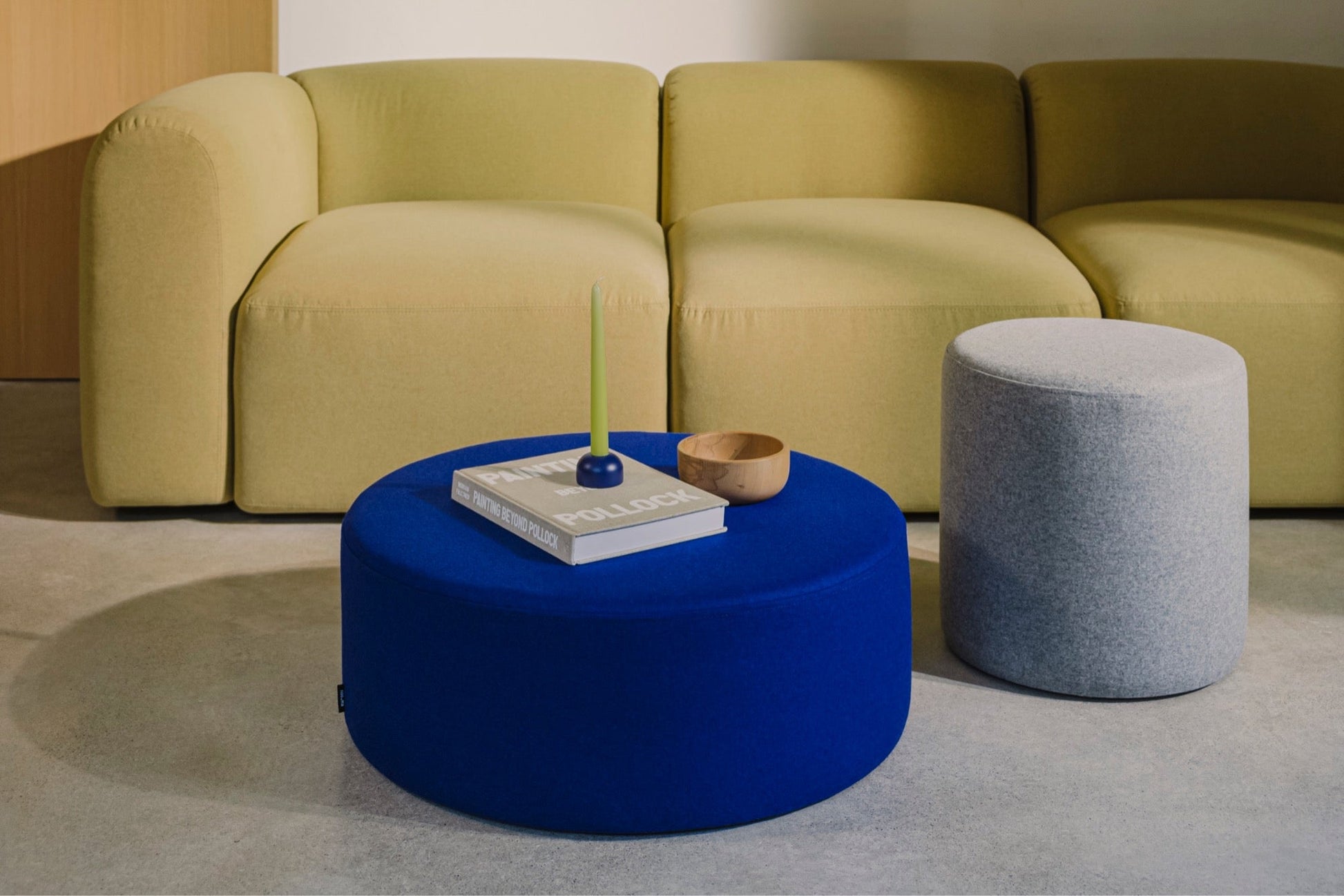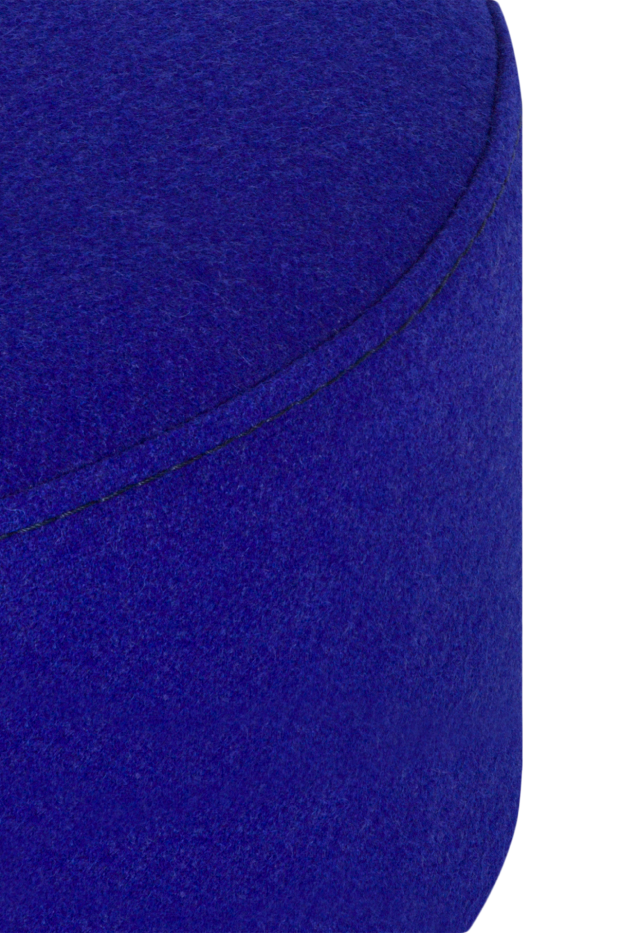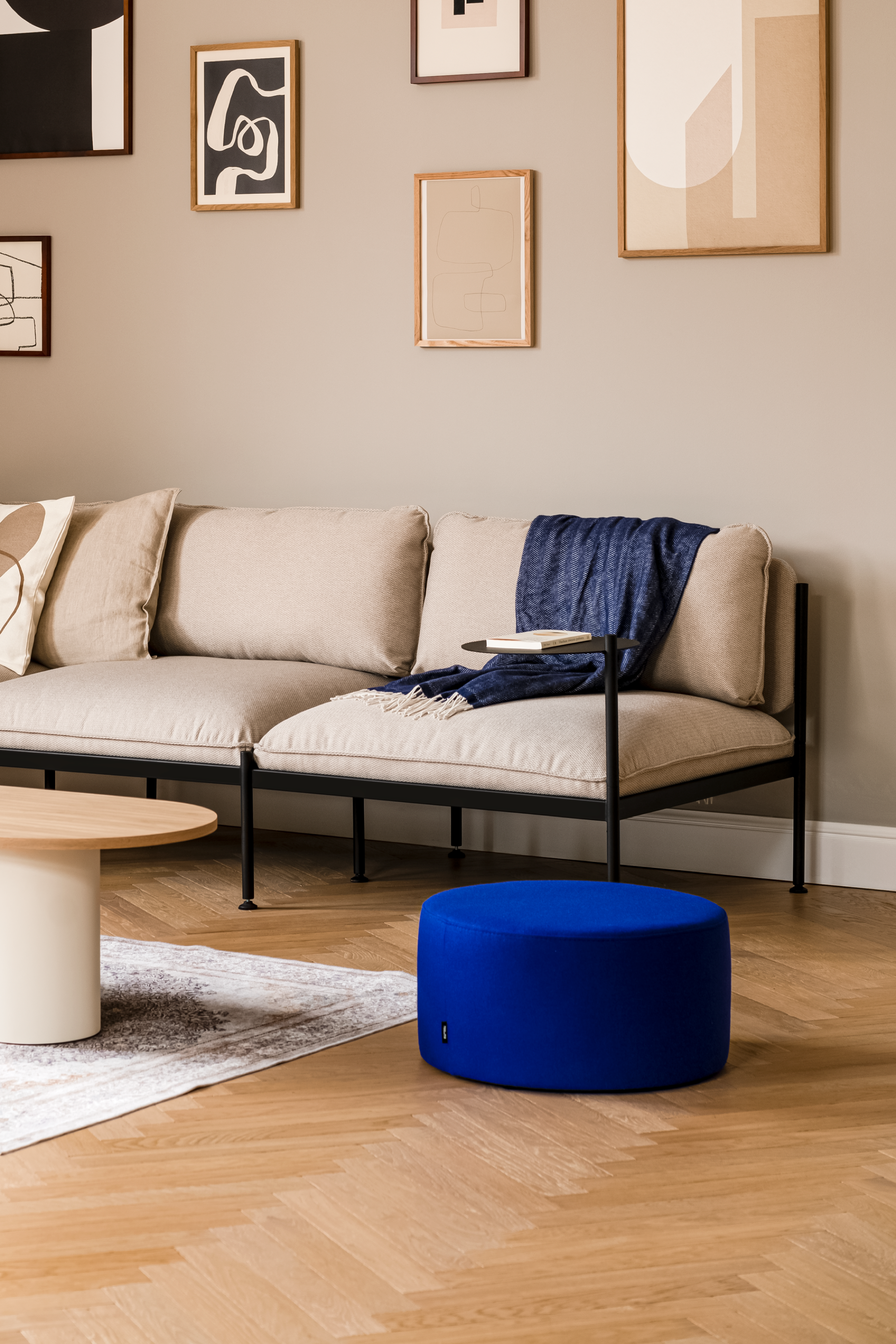Looking for an upholstered seating? This blue, small and round pouf made of high quality wool fabric will be a perfect choice. Use it as a practical ottoman, a convenient footstool or an unconventional side table for your living room or bedroom. A beautiful and functional addition to every interior that comes in matching sets.