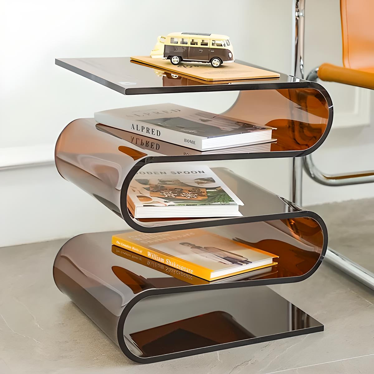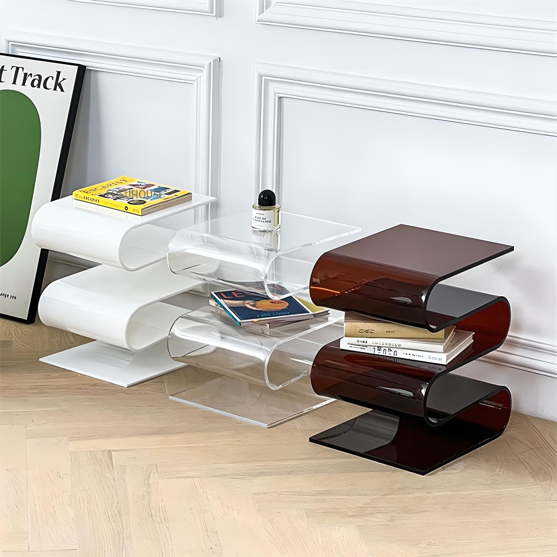Introducing Akryl Acrylic Side Table, the clear choice for those who love unique and playful design. Featuring a wavy shape and transparent acrylic, this side table adds a touch of fun to any space.
