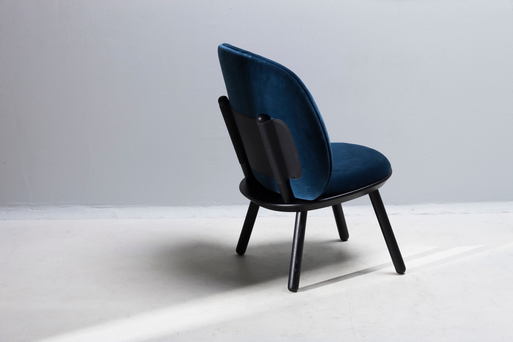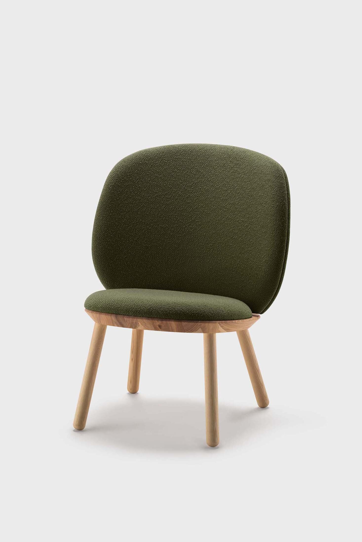 Being the youngest member of the Naïve family, the Naïve Low Chair introduces itself with a bright, yet mature and subtle look. Its main visual characteristic is a large leather strap that holds the backrest attached to the body. A firm connection between wood, leather and textile serves its function and makes it visually distinctive. After a long day, Naïve Low invites you for a cup of tea or coffee, to have a relaxing read or a small adventure while watching a movie. It’s a companion that values your time and sitting quality, so Naïve Low is a chair to live with. Like other pieces in this family, it features a body that can easily be unscrewed and flat-packed. It is composed of long-lasting natural materials and organically suits every background.