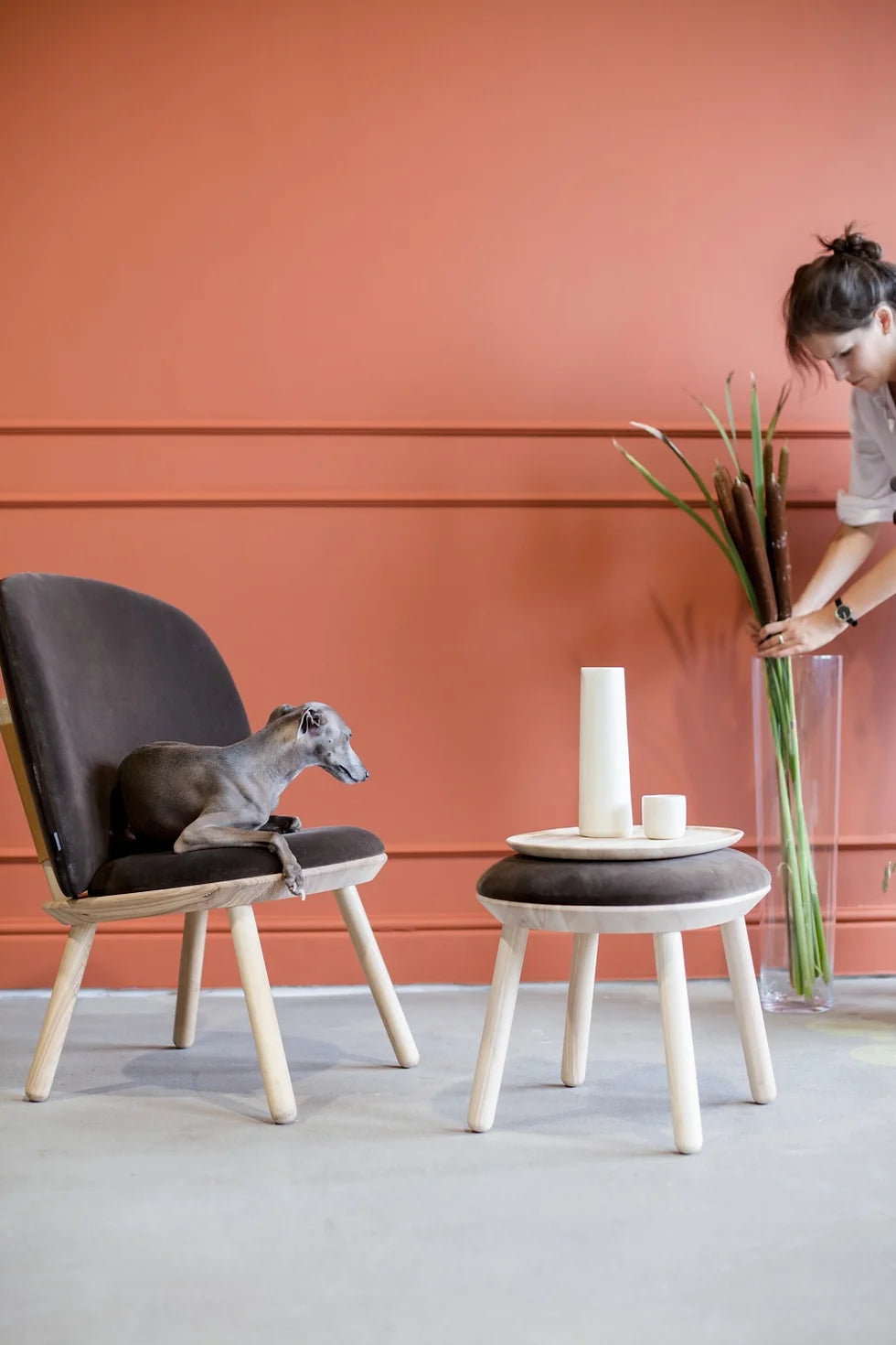 Just like the Naïve Low Chair, the Naïve Ottoman comes in different colours, with the frame being either black or oiled ash wood. The padding is made to aesthetically accommodate the frame, whereas all the solid links between the different materials result in a highly reliable piece of furniture. Soft, welcoming and easy to assemble, this delightful ottoman perfectly fits any environment.