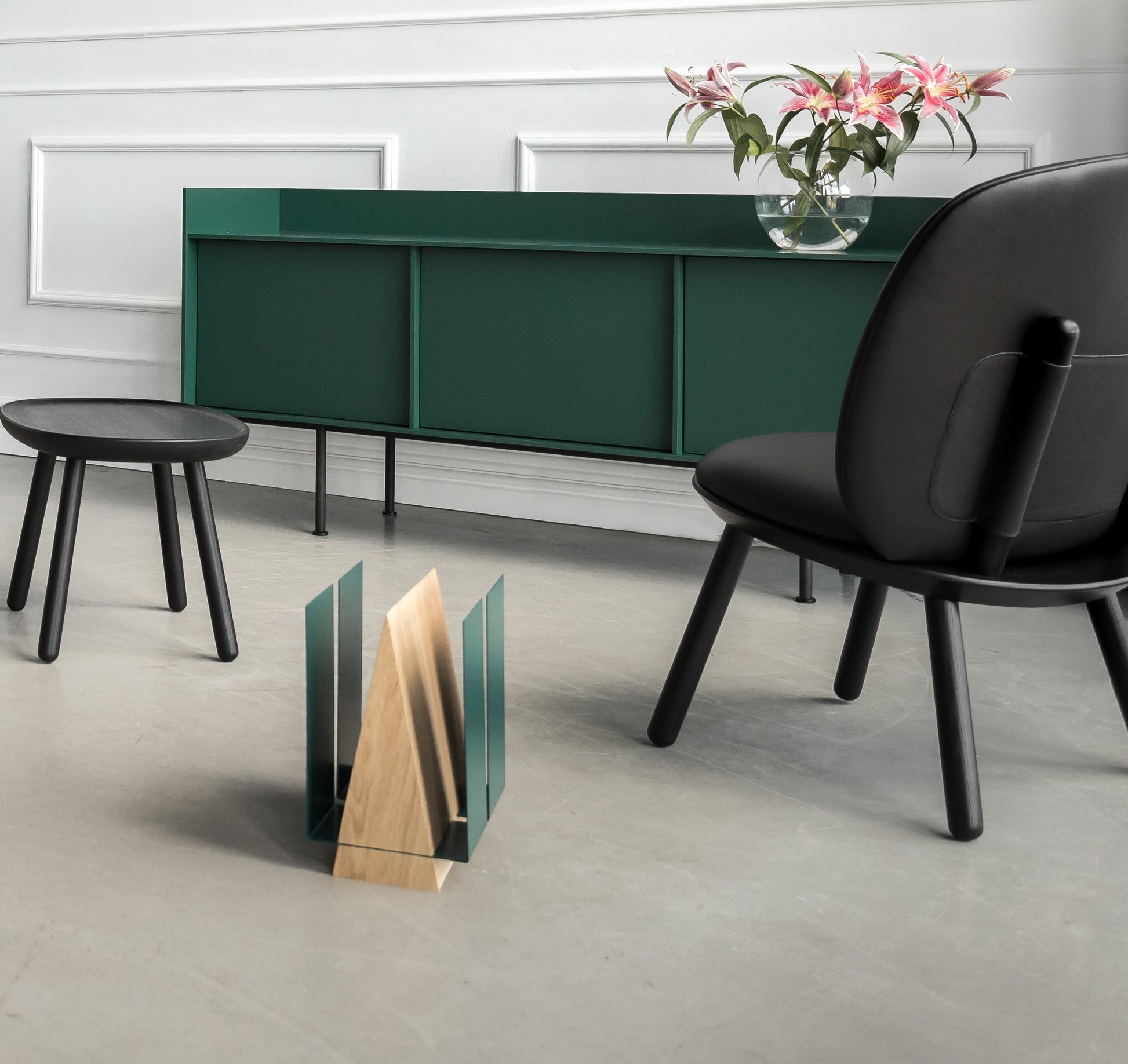 Floor magazine rack WINGS is a free-standing practical interior product that helps to hold magazines, newspapers, mail, periodicals, records at home, offices, and lounges. Made of powder-coated metal and oak wood. The idea of design is an allusion to the wings. The "wings" detail is repeating the size of the magazines and hides them partially, making the total interior surrounding tidier. The magazine rack adds an organic touch of minimalistic design to any interior.
